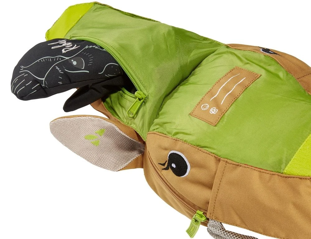 Kindgerecht und praktisch – das macht Stupsi deutlich, das freundlich-praktische Rucksack-Reh für jeden Tag. Der Clou: Es besteht zu mehr als 50 % aus recycelten Materialien – wiederverwerteten Hanffasern und PET-Flaschen. Seine anatomisch geformte Schultergurtbefestigung bietet auf dem Weg in den Kindergarten oder der kleinen Bergtour hohen Tragekomfort, das Rehmaul lässt sich zudem nach oben klappen, um darunter ein Kleidungsstück oder weitere Accessoires unterbringen zu können. Die beiden Netz-Taschen an der Außenseite bieten Platz für Trinkflasche und Regenjacke sowie alles, was der Nachwuchs sonst so unterwegs dabei haben muss – zudem ist der Reißverschluss zum Hauptfach auch für kleine Hände problemlos bedienbar. Mit reflektierenden Elementen. Dieses Produkt ist mit Eco Finish umweltfreundlich wasserabweisend ohne Fluorcarbone (PFC) hergestellt. Das VAUDE Green Shape-Label steht für ein umweltfreundliches, funktionelles Produkt aus nachhaltigen Materialien.